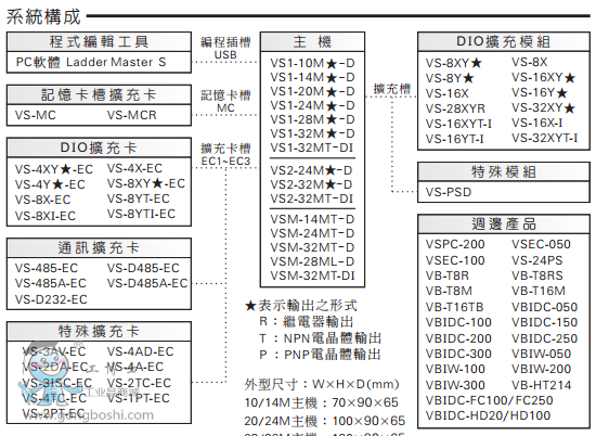- 基本型VS1系列,適用于各種簡(jiǎn)單的自動(dòng)控制系統(tǒng),諸如載貨升降機(jī)、停車設(shè)備、輸送設(shè)備、制鞋機(jī)、制磚機(jī)、木工機(jī)械等,各種只需簡(jiǎn)單順序控制的產(chǎn)業(yè)機(jī)械。
