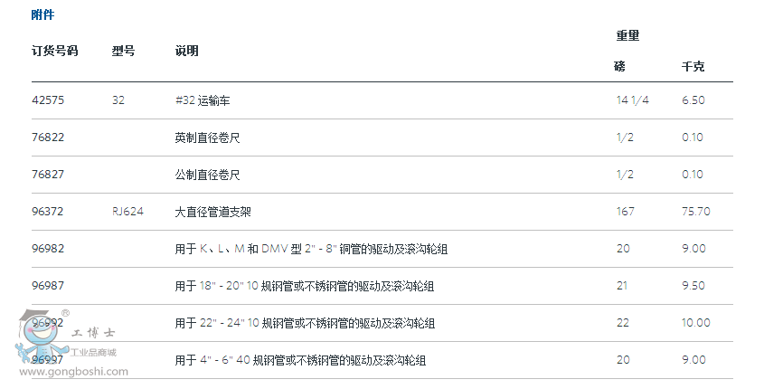 適用管徑 2" -12" Schedule 5、10 和 40 鋼管、不銹鋼管和鋁管。*
