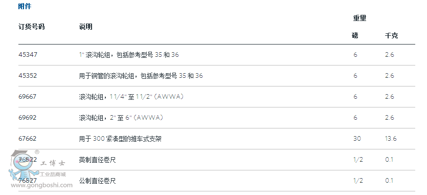 1 1/4" - 1 1/2" 和 2" - 6" AWWA 滾溝輪組。