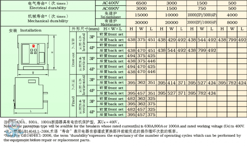 斷路器主電路及欠電壓脫扣器線圈、電源變壓器初級線圈的安裝類別為Ⅳ,其余輔助電路、控制電路安裝類別為Ⅲ;