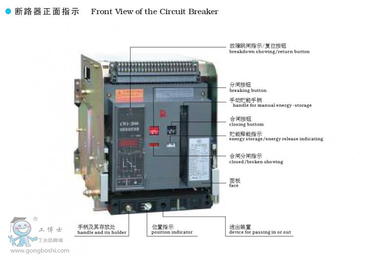 斷路器安裝在柜體小室內,且加裝門框,防護等級達IP40。