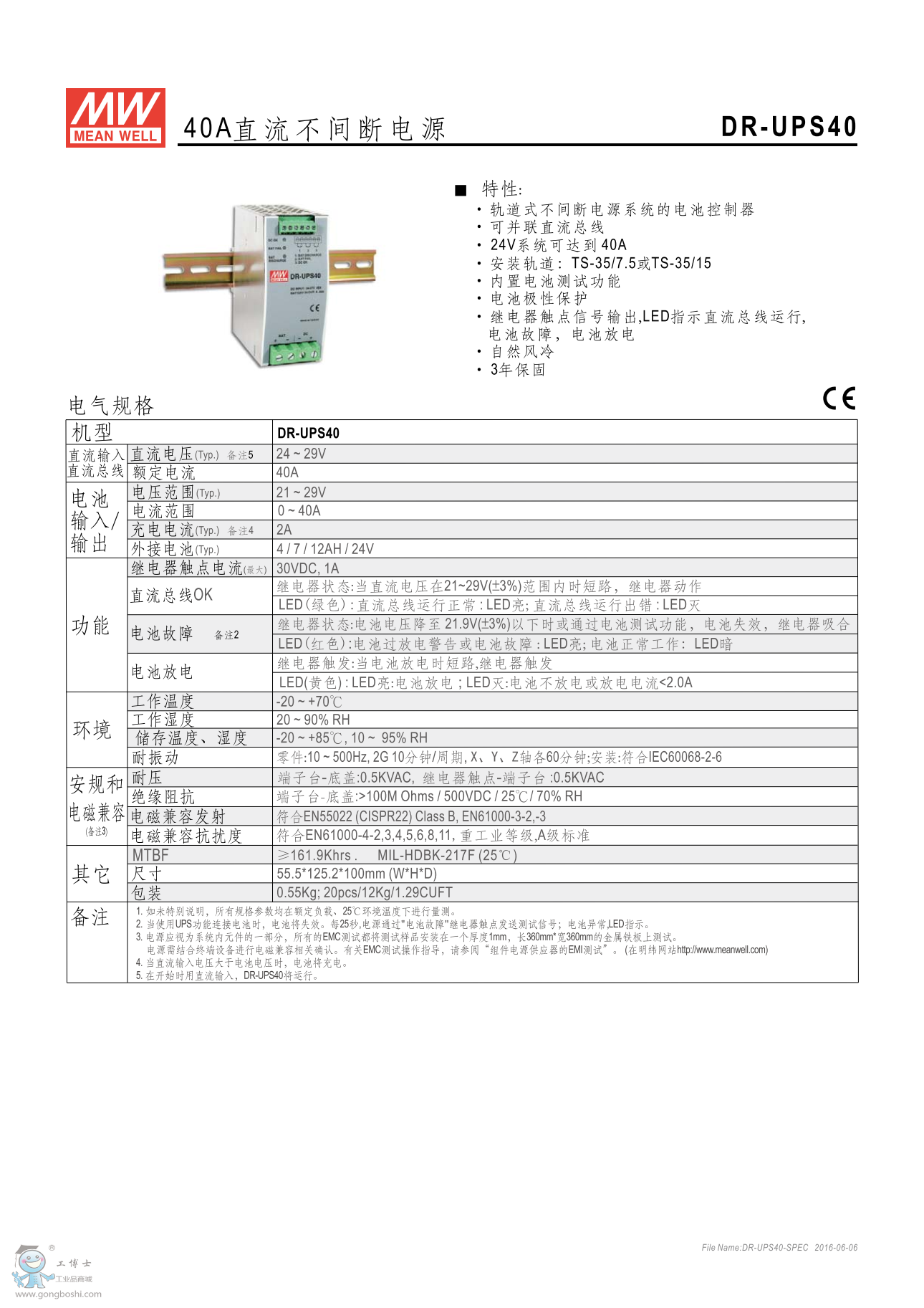 明緯UPS電源DR-UPS40 40A直流不間斷電源