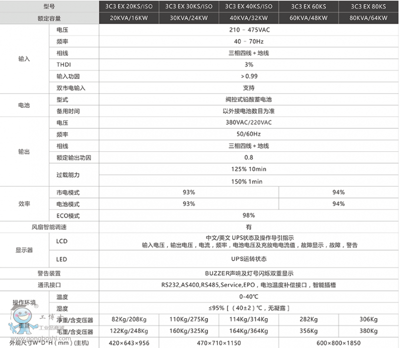 整機效率高達93%;提供ECO模式,使效率高達98%以上,降低了UPS的電力損耗。