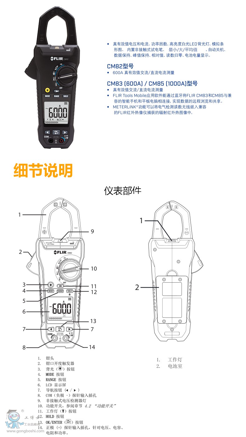 FLIR 菲力爾 功率鉗形表 美國進口 CM83 數(shù)字功率鉗形表 600A與藍牙無線傳輸