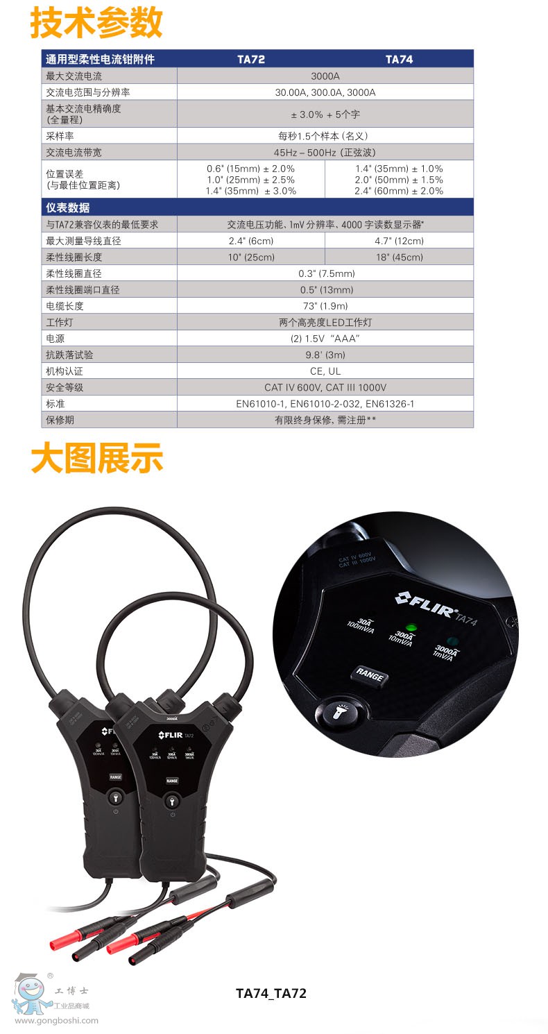 FLIR 菲力爾 通用型柔性電流鉗 TA74 通用型柔性電流鉗 45.72cm