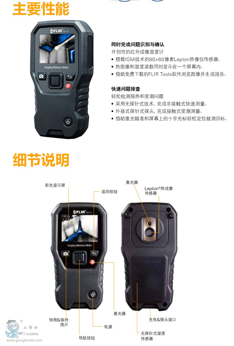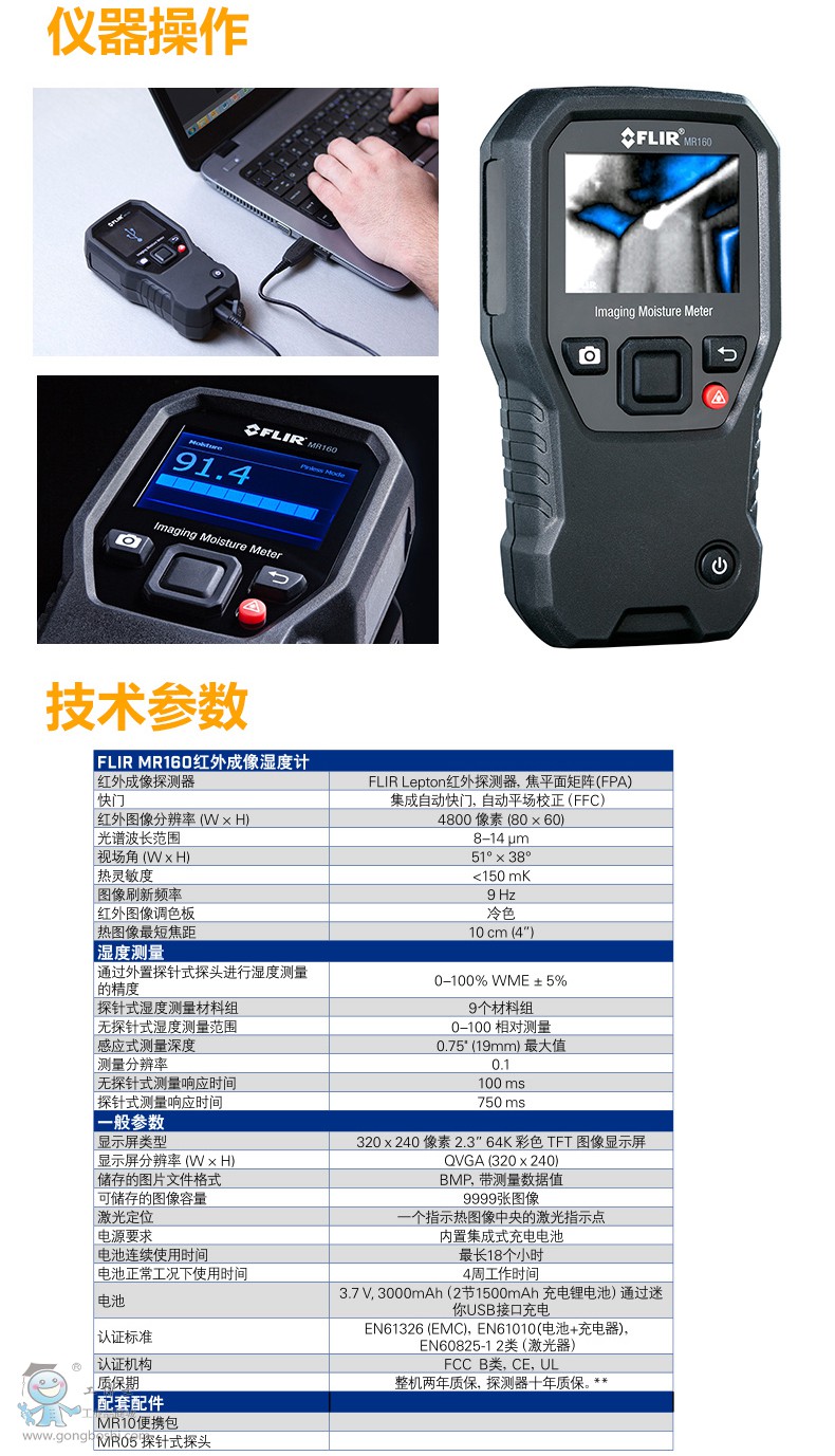 FLIR 菲力爾 MR160紅外成像溫濕度計 紅外成像 材料水分含量