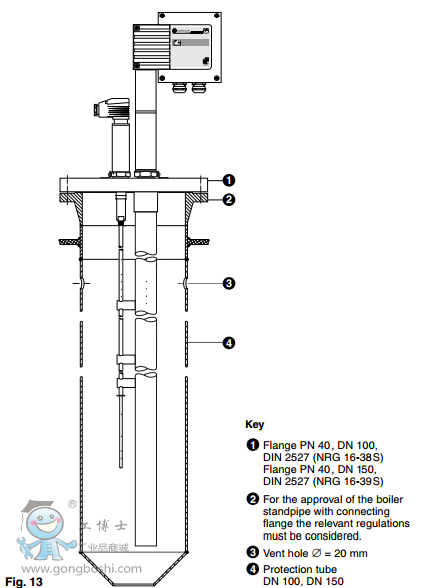 The Flowserve Gestra level probe is designed to limit the high or low level in a boiler. In combination with a level switch, this level probe is part of the safety chain.