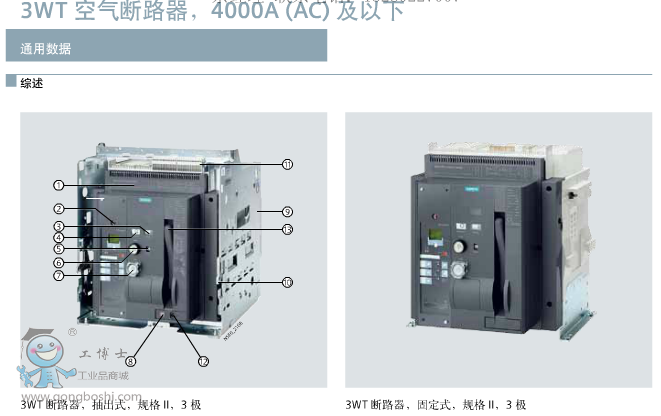 3WT8061-5UN30-0AB1 框架斷路器 630A/3P,66KA,Icw=50KA 1S,ETU35WT.門框,分閘按鈕CES安全鎖,