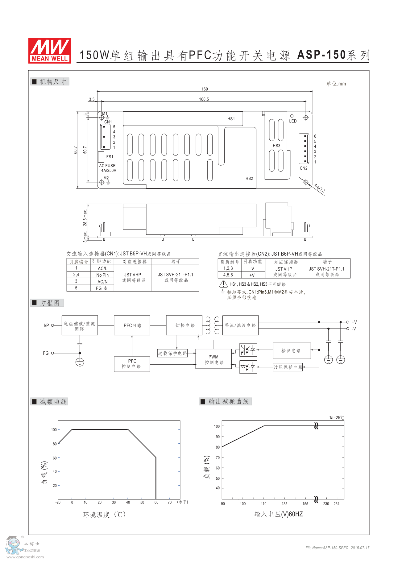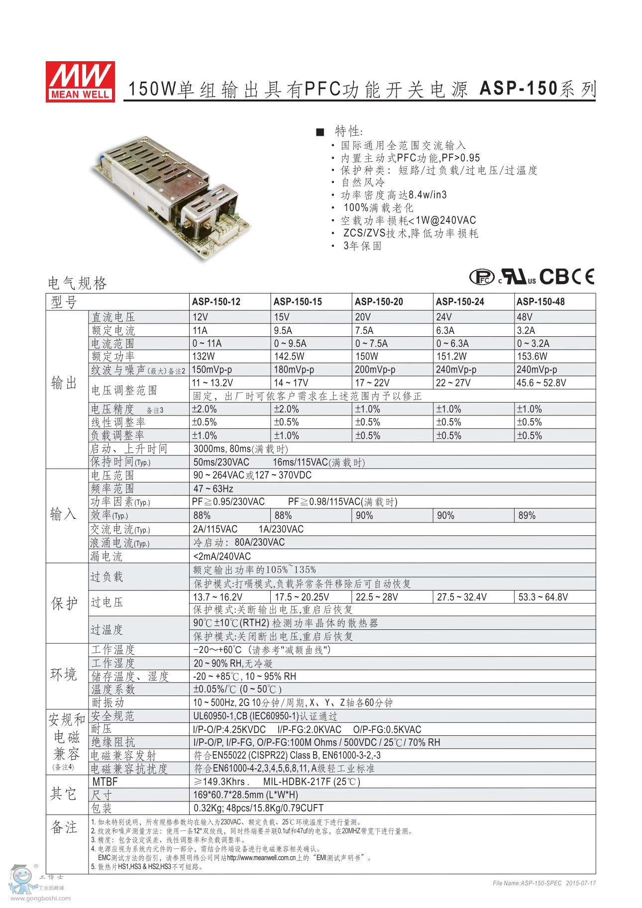 明緯裸板工業(yè)電源ASP-150-20有PFC功能