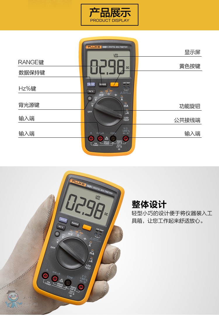 福祿克(FLUKE)F18B+ 數字萬用表 掌上型多用表 儀器儀表