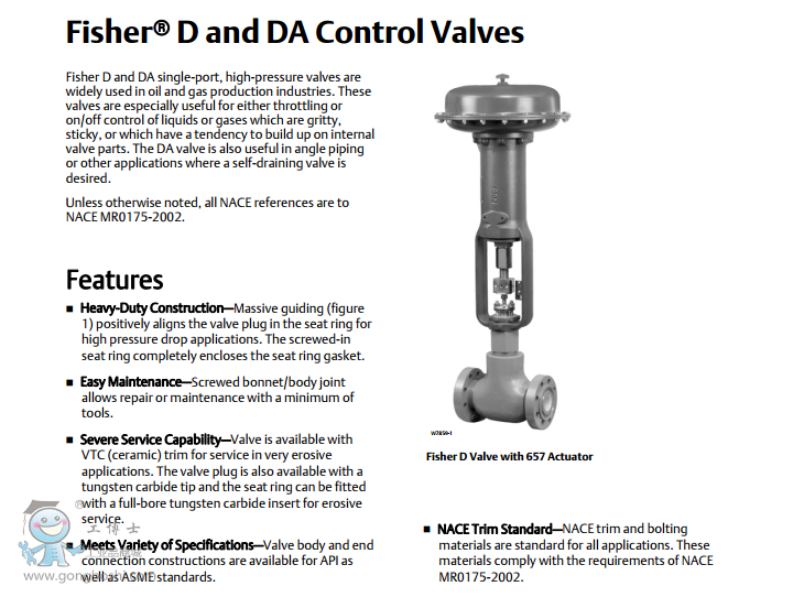 Fisher D DA 高壓直通控制閥-費(fèi)希爾Fisher