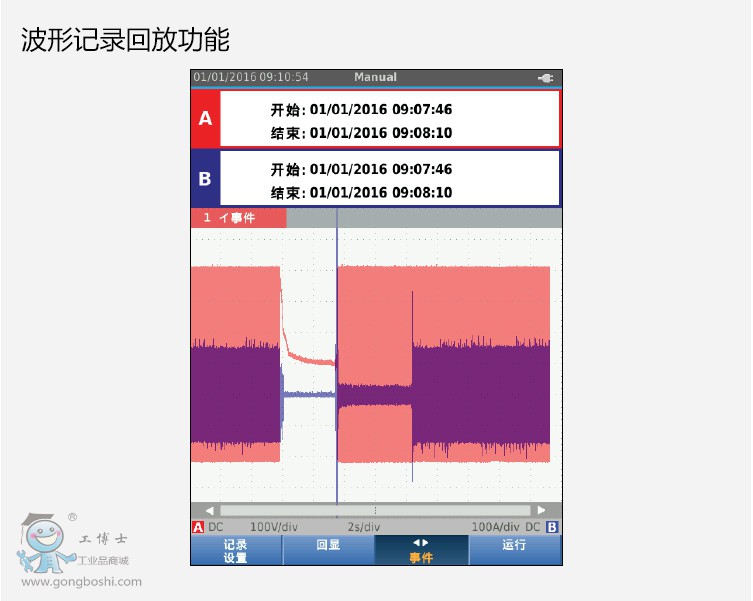 ScopeMeter® 120B 系列是一款外形緊湊、堅固耐用的示波器,適用于工業(yè)電氣和機電設(shè)備故障排除及維護應(yīng)用。此測試工具集示波器、萬用表和高速記錄器于一身,使用非常簡便。ScopeMeter 120B 系列同時還兼容 Fluke Connect® 移動應(yīng)用程序和 FlukeView®,通過ScopeMeter 軟件能夠進行深入合作、數(shù)據(jù)分析并存檔關(guān)鍵測試信息。120B 系列工業(yè)用 ScopeMeter 測試工具擁有創(chuàng)新功能,專門設(shè)計以幫助技術(shù)人員更快的進行故障排除并獲得所需的信息,從而保證系統(tǒng)正常運行。無需進行手動測量調(diào)整即可通過 Connect and ViewTM觸發(fā)和設(shè)置技術(shù)顯示波形,并通過 Fluke IntellaSetTM技術(shù)自動顯示相關(guān)測量數(shù)值。這款示波器能夠通過 Recorder Event Detect 功能捕捉并記錄難以發(fā)現(xiàn)的間歇性事件,方便技術(shù)人員查看和分析。