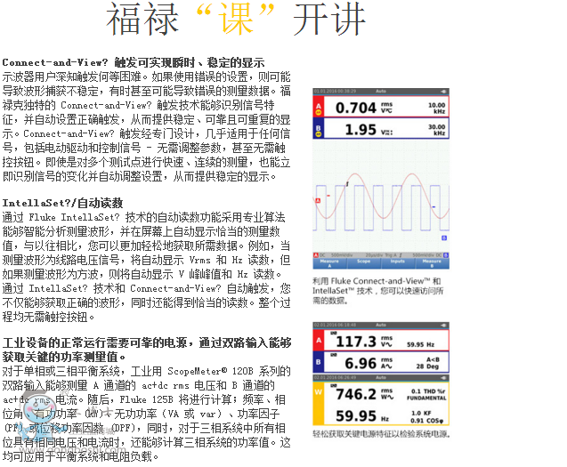 Fluke 120B 系列工業(yè)手持萬用示波表