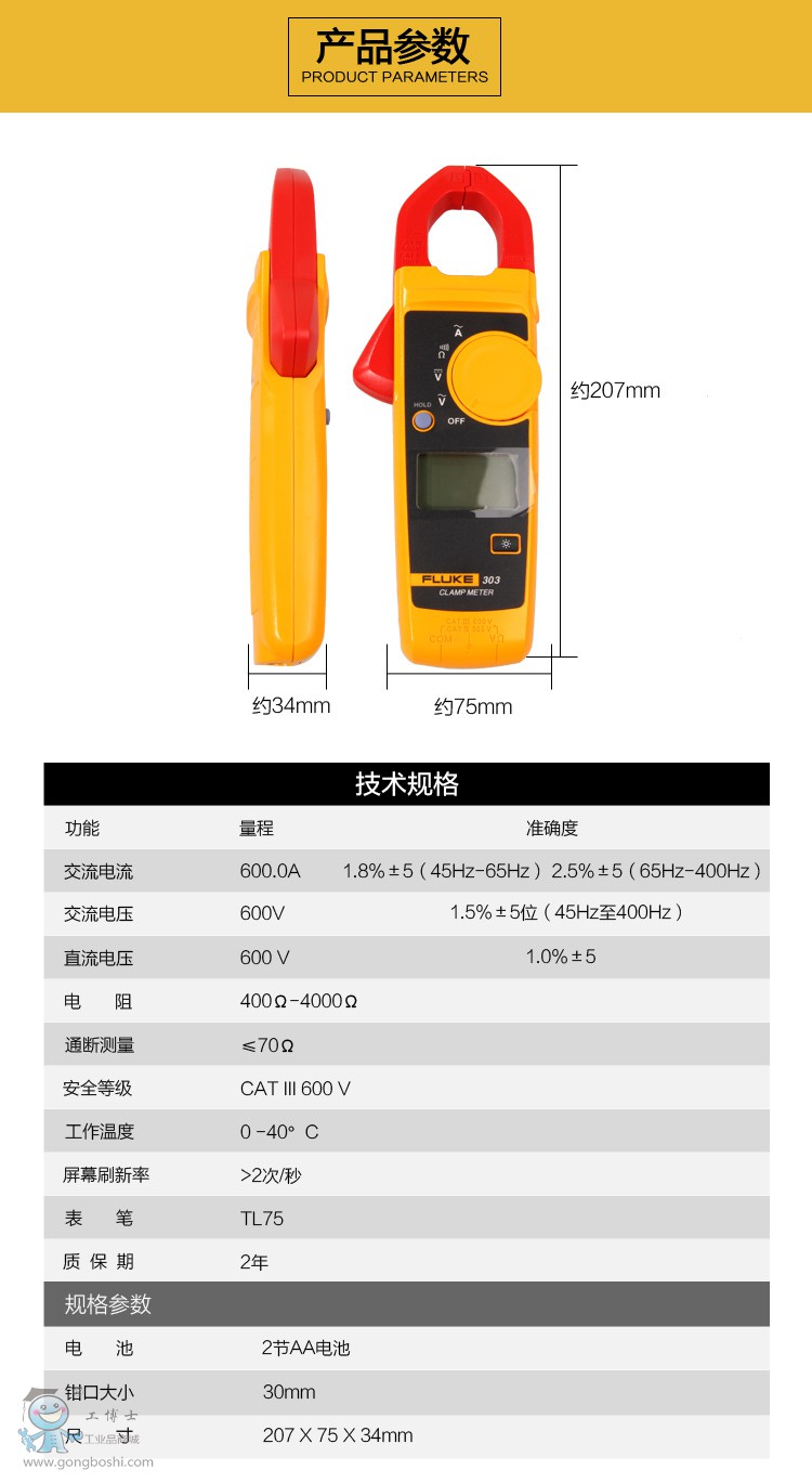 福祿克(FLUKE)F303 鉗形萬用表 數字多用表 交直流鉗形表
