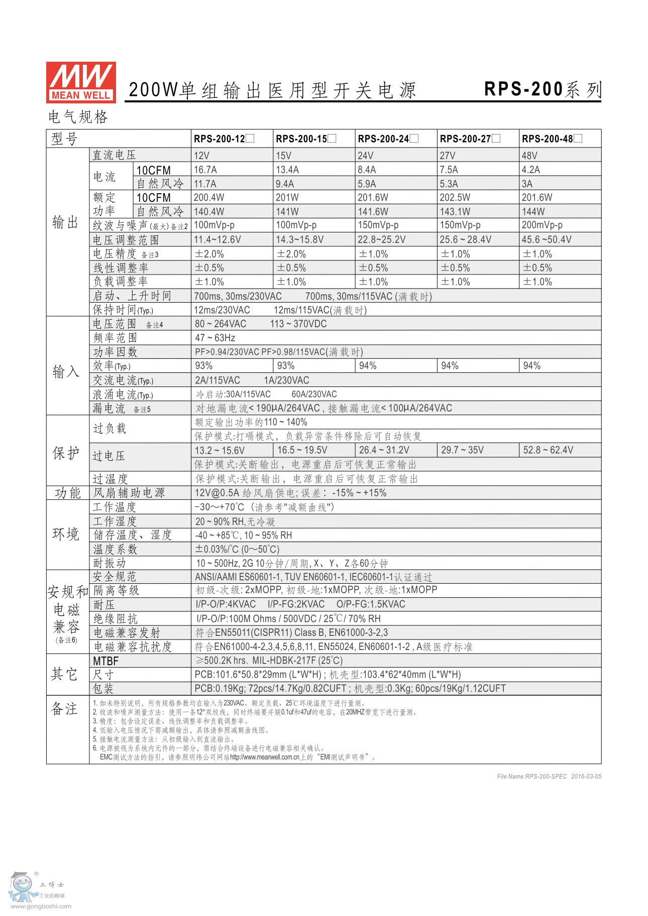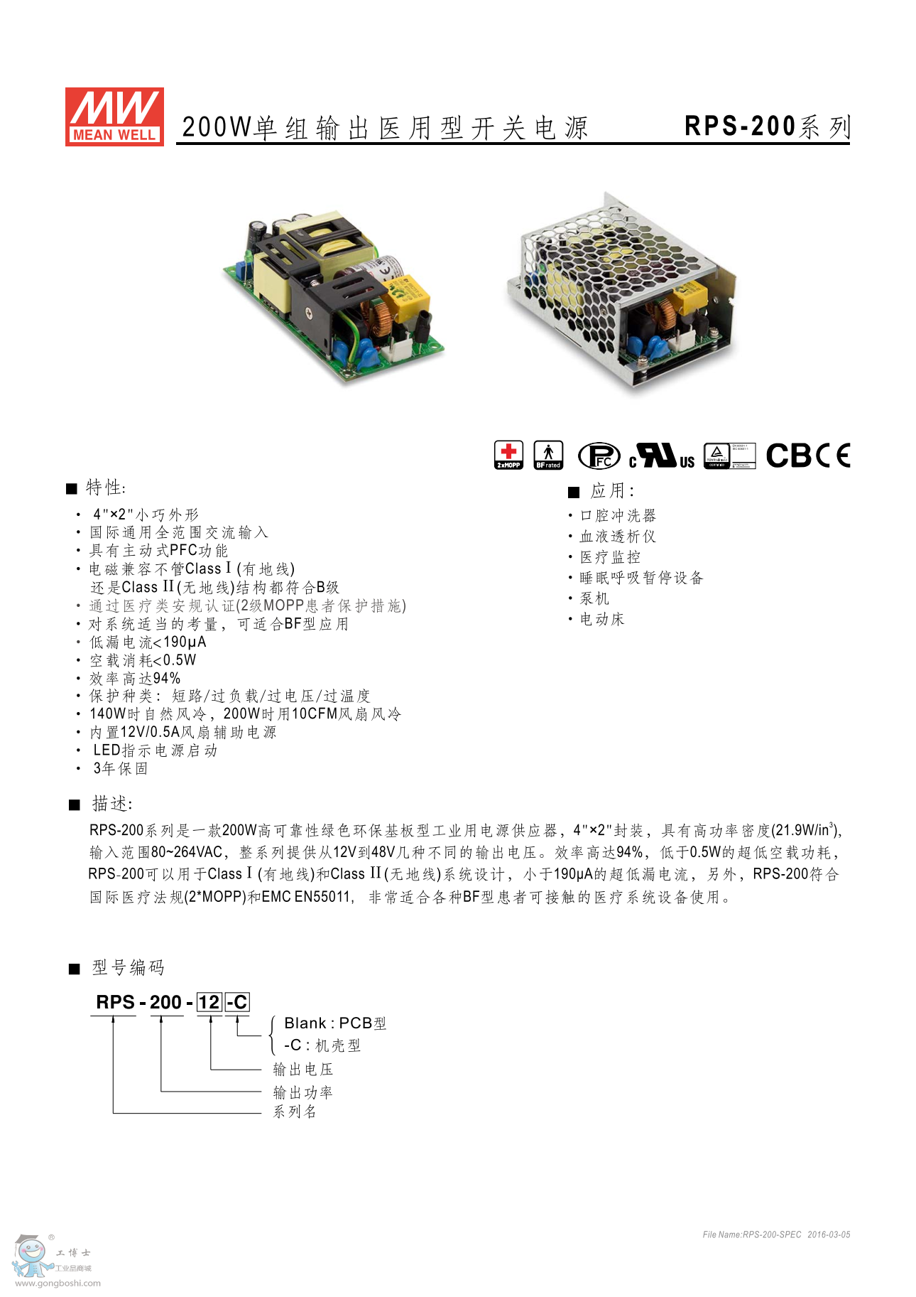 明緯RPS-200-24 單組輸出200W醫(yī)療電源PCB型專用 |