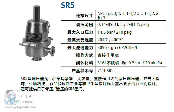 SR5型調壓器是一種結構緊湊,大容量,直接作用式的減壓調壓器。它專為醫