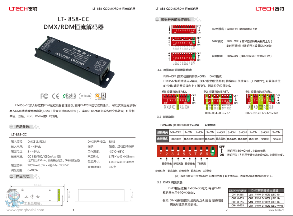 雷特LT-858-CC DMX/RDM恒流解碼器 LED控制器