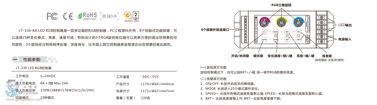 雷特LT-330-8A LED RGB控制器