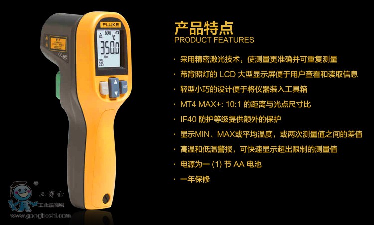 福祿克(FLUKE)MT4 MAX+ 紅外測溫儀 點(diǎn)溫儀 測溫槍 電子溫度計(jì) |