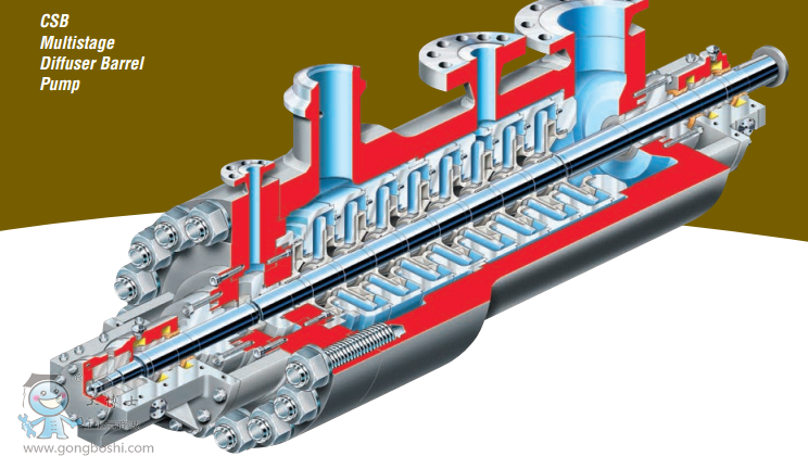 The CSB is a cost-effective, diffuser-style barrel pump for boiler feed service in combined cycle and start up service in thermal power plants. Multistage, horizontal barrel, diffuser design. Axial thrust balance device with stacked rotor construction.
