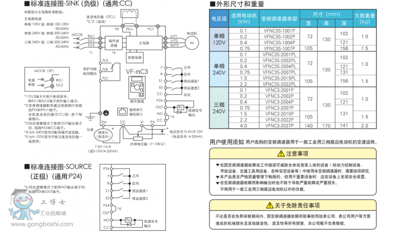東芝簡單小型變頻器VFNC3-2015P三相240V功率1.5KW重1.5kg