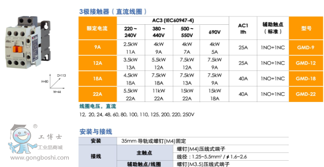 LS產電GMD-18 直流接觸器 18A
