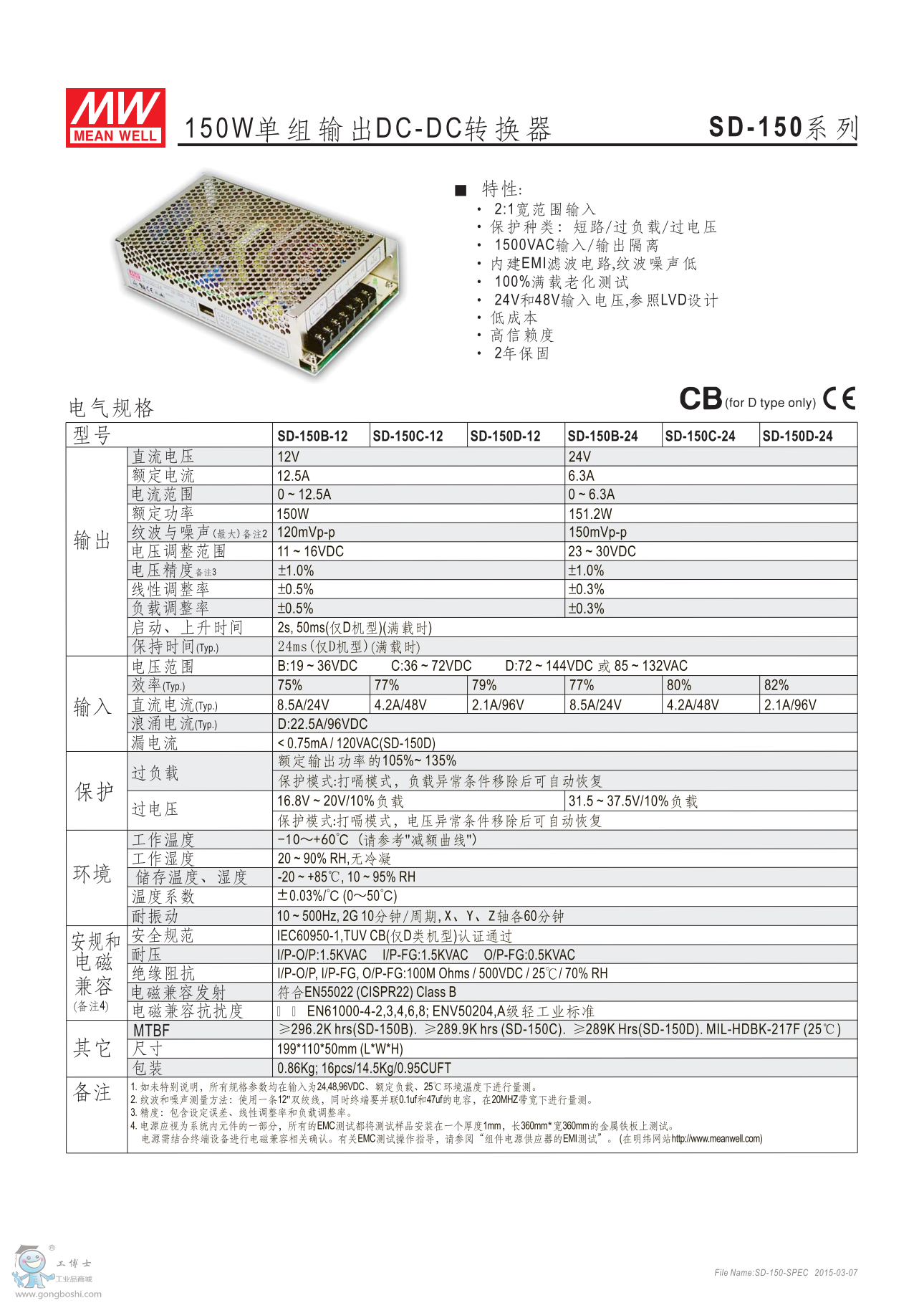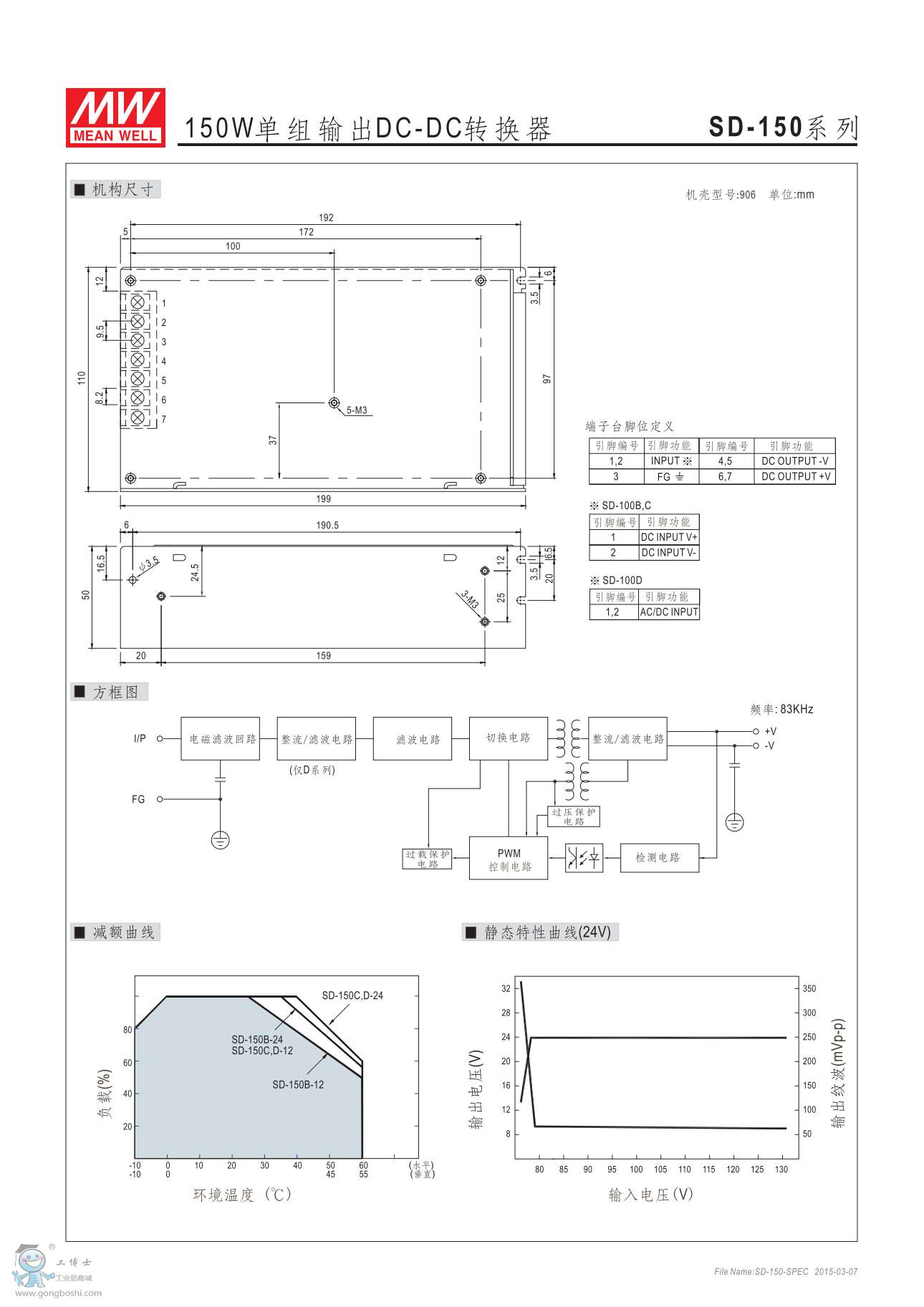 明緯 SD-150C-24 直流直流150W單組輸出轉換器