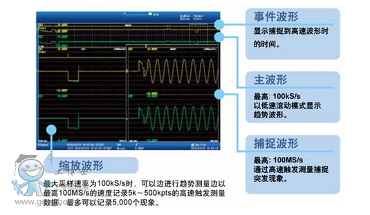 進(jìn)行耐久性測(cè)試時(shí),為能把握長(zhǎng)時(shí)間的趨勢(shì)數(shù)據(jù),通常采用低采樣率收集趨勢(shì)數(shù)據(jù)。但突發(fā)的高速瞬時(shí)現(xiàn)象就需要采用高采樣率捕捉。