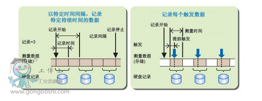 通過指定記錄標(biāo)準(zhǔn),可以把想要的數(shù)據(jù)有效自動地記錄到硬盤。只需指定記錄位置、記錄開始和停止條件、重復(fù)記錄條件和其它標(biāo)準(zhǔn)即可。在Freerun測量中,對于記錄開始可定義的參數(shù)有:立即開始、時(shí)間和報(bào)警;記錄結(jié)束條件可指定參數(shù)有:連續(xù)、時(shí)間、記錄時(shí)間和報(bào)警;重復(fù)記錄條件可指定參數(shù)有:記錄周期和記錄數(shù)量*。在觸發(fā)測量中,每次的觸發(fā)測量數(shù)據(jù)都會被記錄。還可以手動把SL1000內(nèi)置采集存儲器中的數(shù)據(jù)保存至PC硬盤。