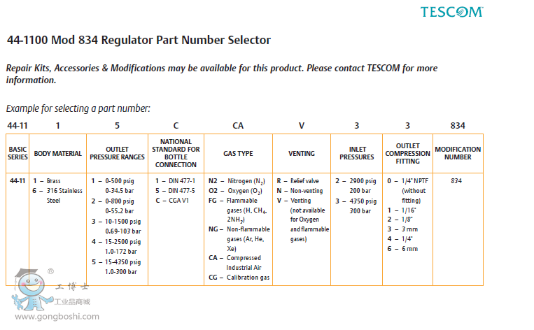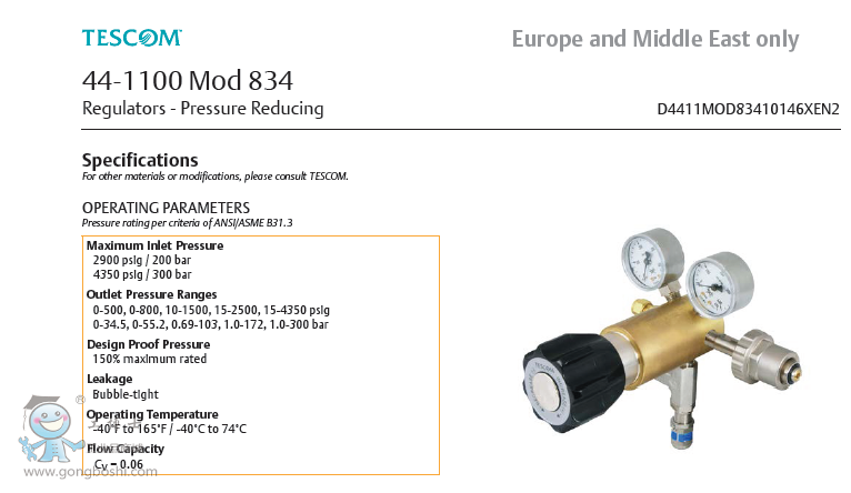 TESCOM 44-1100 Mod 834減壓調節閥-艾默生EMERSON TESCOM