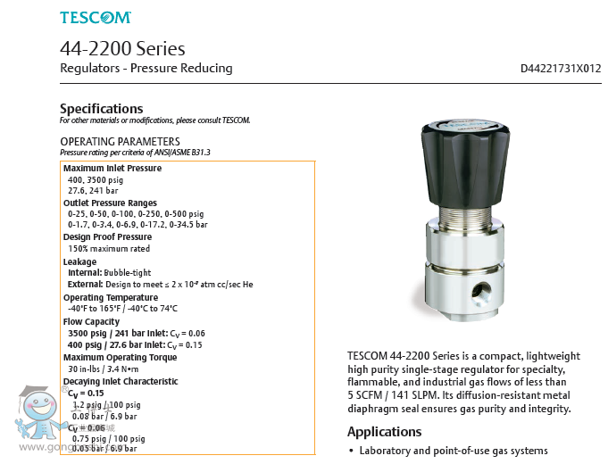 TESCOM 44-2200 減壓調節閥-艾默生EMERSON TESCOM