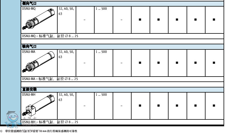 1.圓形氣缸,缸徑從32到63 mm