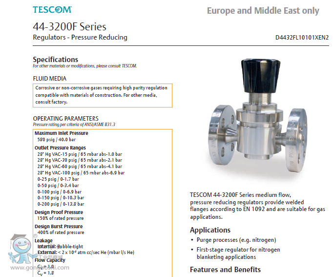 TESCOM 44-3200F 減壓調(diào)節(jié)閥-艾默生EMERSON TESCOM |