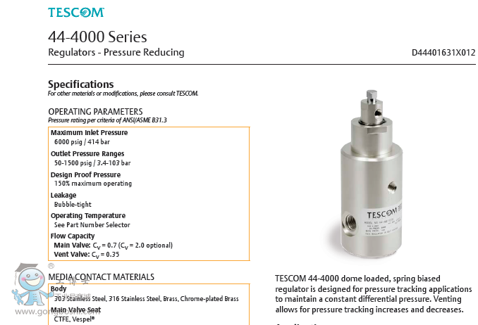 TESCOM 44-4000 減壓調節(jié)閥-艾默生EMERSON TESCOM
