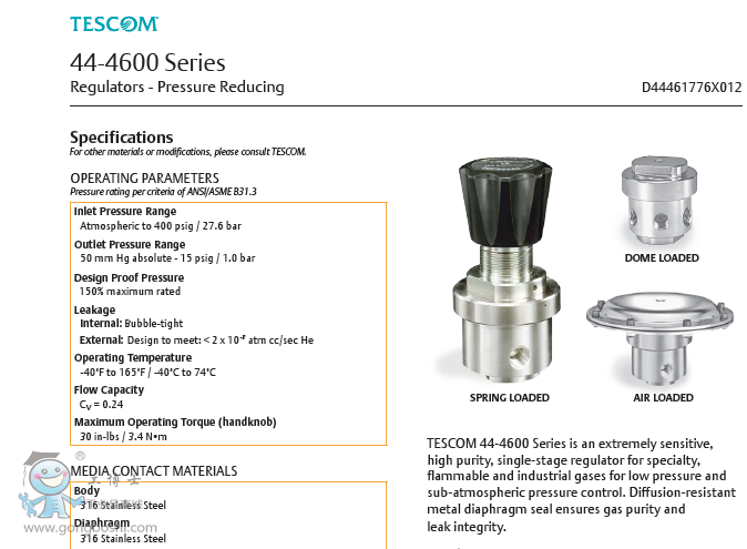 TESCOM 44-4600 減壓調節閥-艾默生EMERSON TESCOM