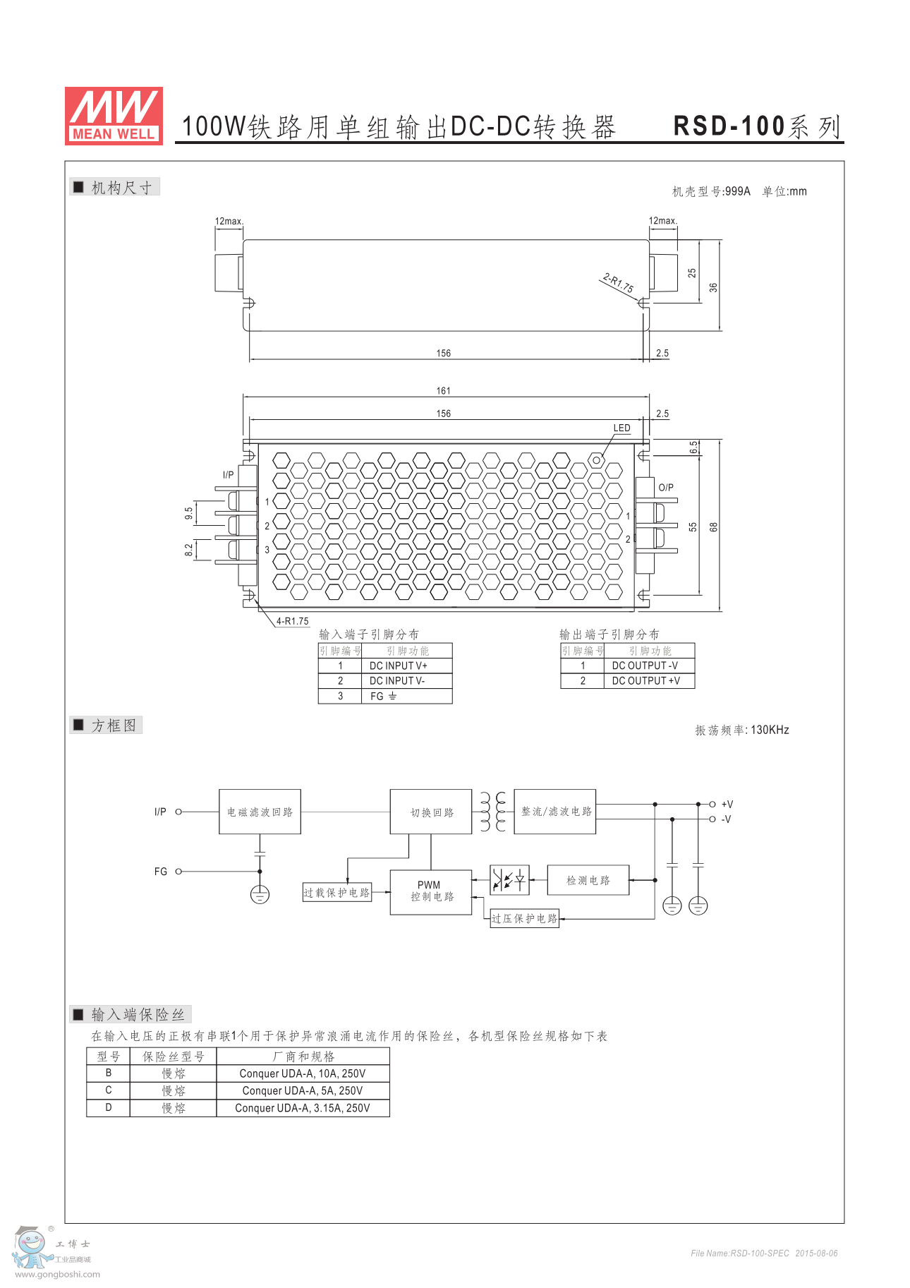 RSD-100D-5 5V 20A 明緯鐵路專用電源DC-DC轉換器 |