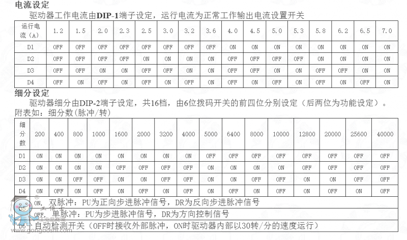 ● 步進(jìn)脈沖停止超過100ms時,線圈電流自動減到設(shè)定電流的一半