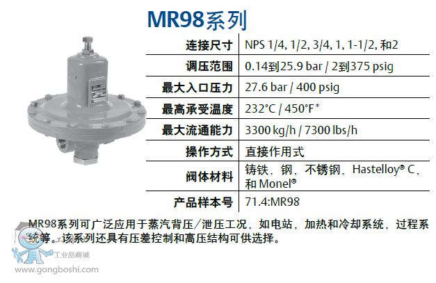 MR98系列可廣泛應用于蒸汽背壓/泄壓工況,如電站,加熱和冷卻系統,過程系