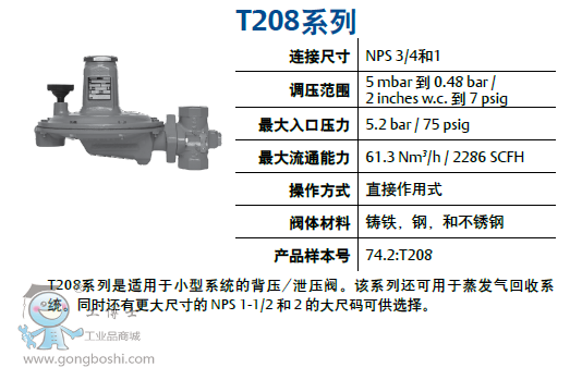 T208系列是適用于小型系統的背壓/泄壓閥。該系列還可用于蒸發氣回收系