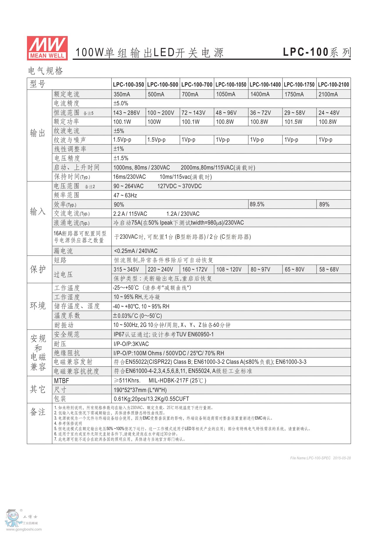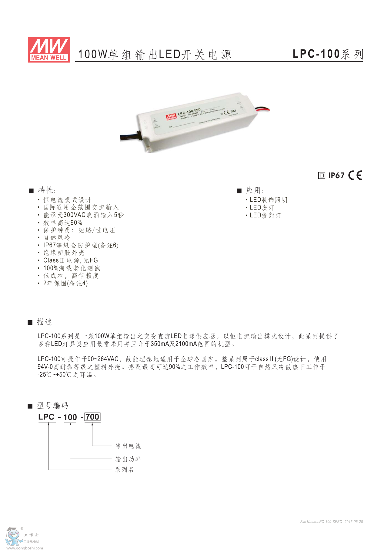 meanwell明緯LED開關電源LPC-100-500 |