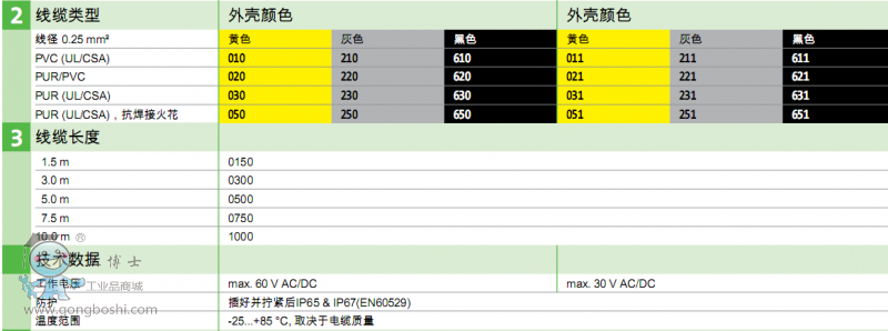 一 4種標準電纜類型(PVC ,PUR/PVC,PUR-UL/CSA,PUR(極端應用型) )