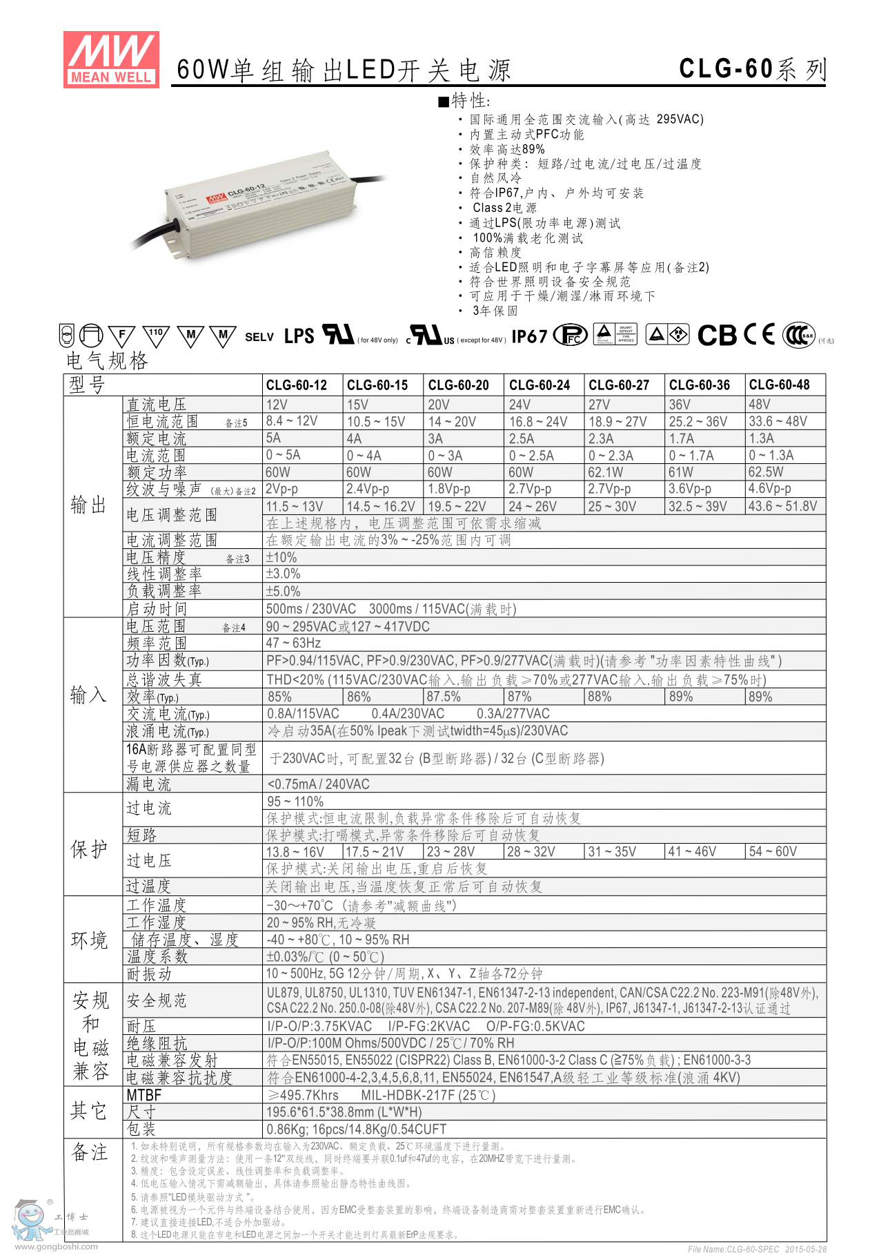明緯CLG-60-24 60W單組輸出LED開關電源