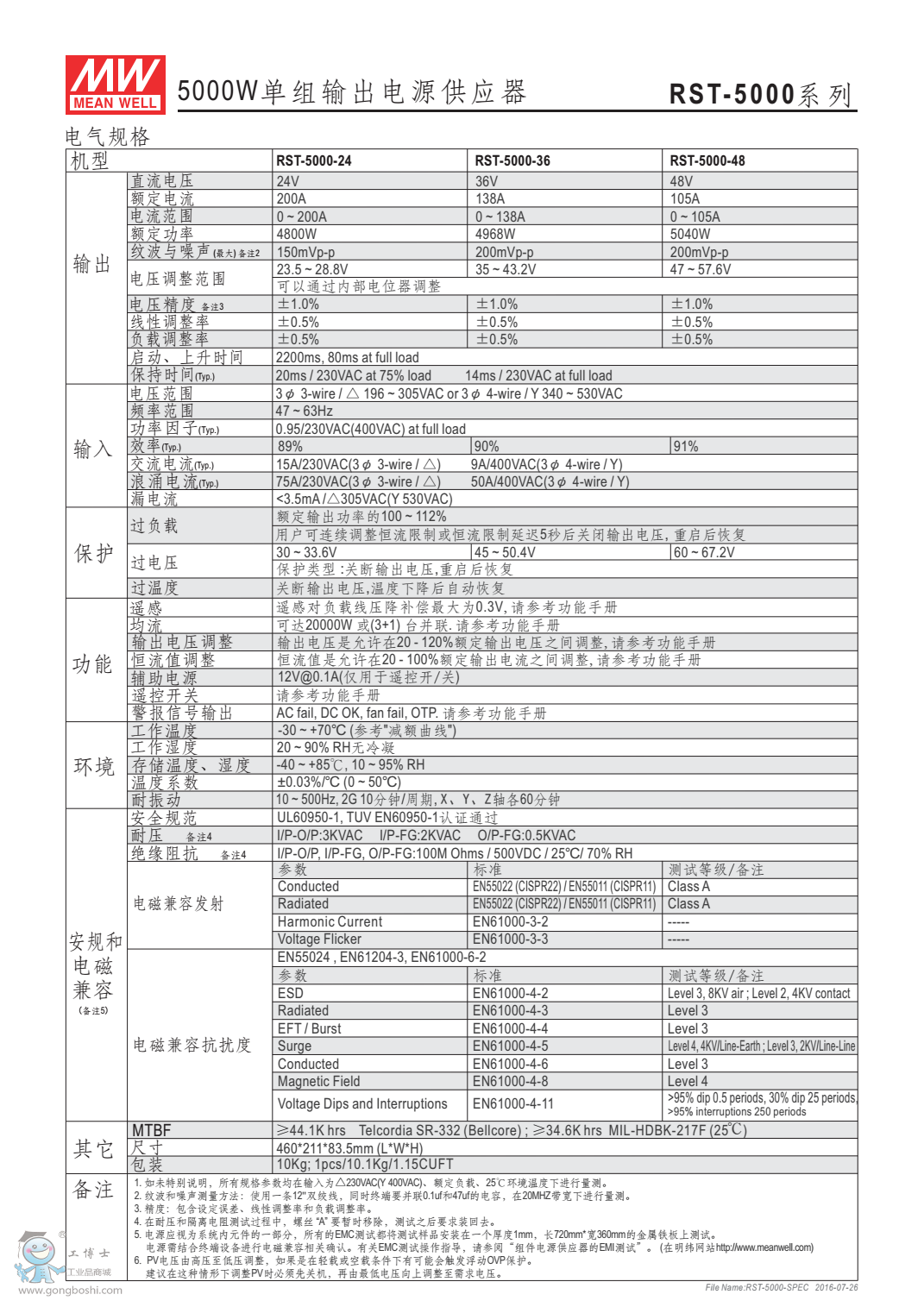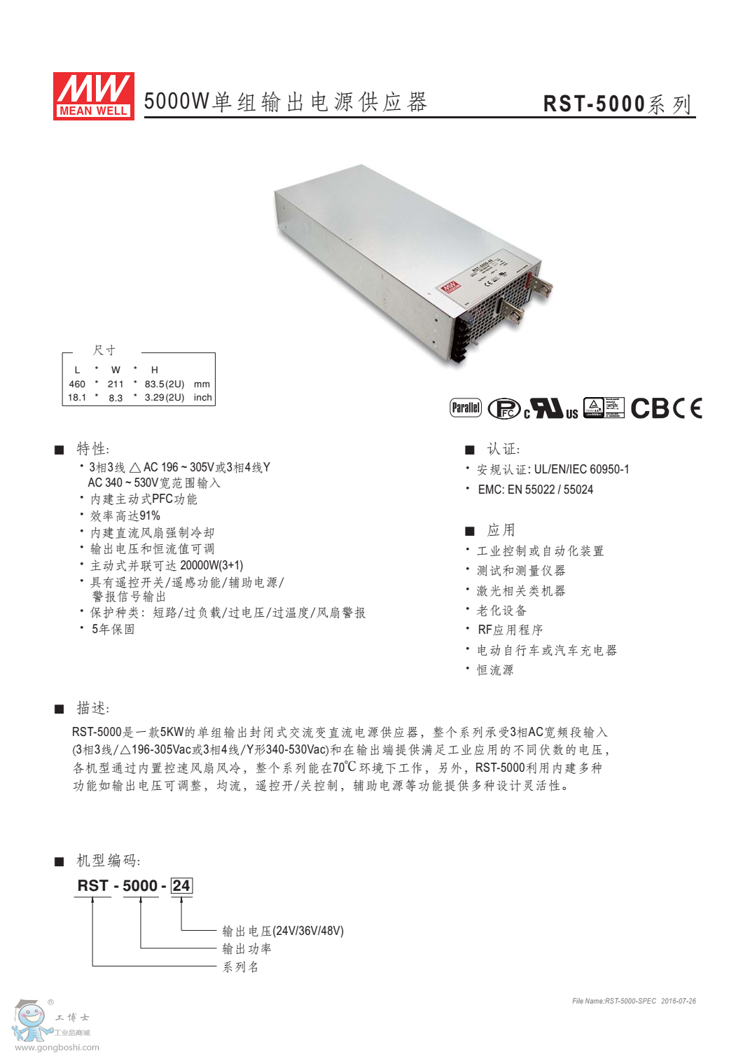 臺灣明緯可編程電源供應器RST-5000-48 5000W24V |