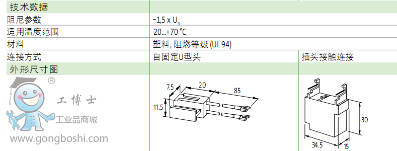 電動機接觸器有10針和1個接地連接點并內(nèi)置抑制模塊和預(yù)制線纜