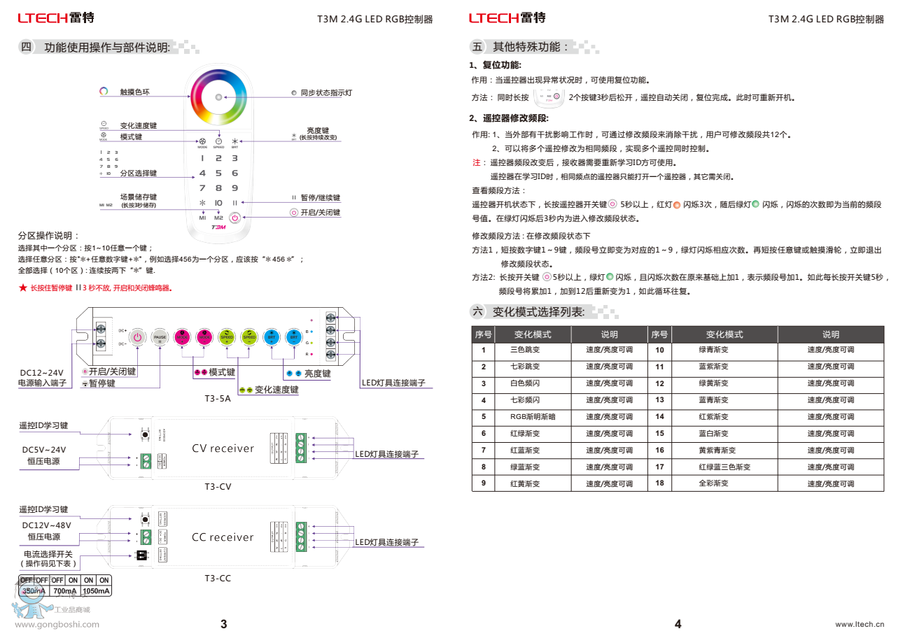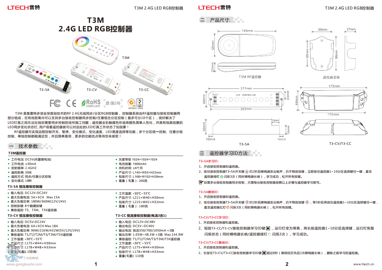 LTECH雷特T3M 2.4G LED RGB控制器