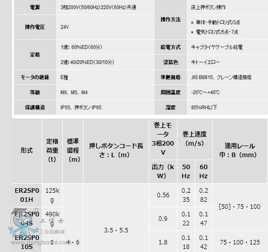 重載的實(shí)力派 125kg-20t(3相) KITO ER2系列