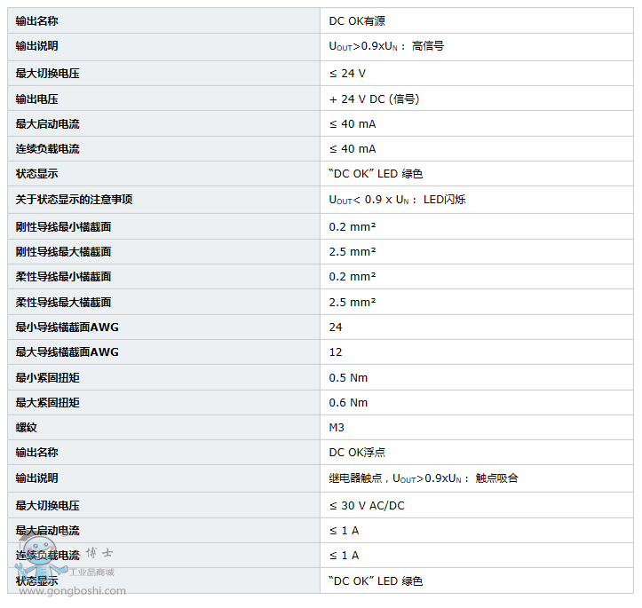 QUINT POWER是功能強大的60——960 W DC的通用電源設備。 提供寬域輸入,具備單相與三相型號,帶國際認證,該解決方案是無可比擬的。 QUINT POWER提供可靠的電源: 大容率的電容能夠保證滿載情況下干線緩沖時間超過20 ms。 即使在發生缺相故障時,所有三相設備仍能提供完全輸出電力。 Power Boost功率裕度具有高啟動電流,用于負載啟動,確保熔斷器可靠觸發。 預防性功能監視可診斷非正常工作狀態,將系統的故障時間降至*低。 有源晶體管開關輸出和浮地繼電器觸點可實現遠程監視。 所有模塊具有空載和短路保護,輸出電壓穩定且可調節,輸出電壓為12、24或48V DC,輸出電流為2.5、5、10、20、30或40A。該產品系列還包括可用于Ex 2區的電源、不間斷電源、AS-i電源和Quint電源。