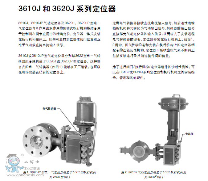 - 多功能—3610J 和 3610JP 定位器從控制設備接受氣動輸入信號,而 3620J 和 3620JP 定位器從控制設備接受直流電流輸入信號。氣動和電動氣動定位器均提供分程功能以及可調的零位和量程。定位器零位和量程的可調比允許對所有標準輸入信號(包括分程)使用單一量程彈簧。