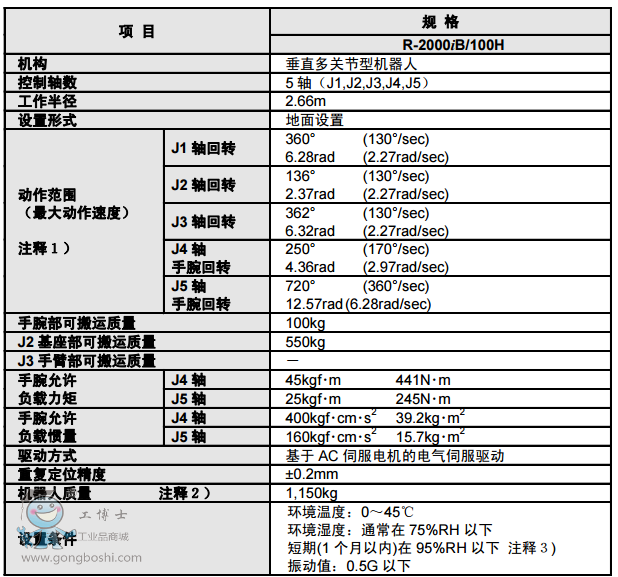 計(jì),使R-2000iB在保持*大的動(dòng)作范圍和可搬運(yùn)