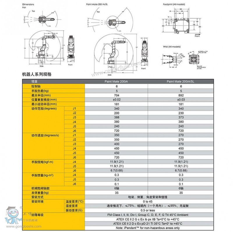 發那科機器人Paint Mate是一款緊湊型的噴涂機器人,采用伺服電機驅動,在世界同類產品中擁有*佳性能,適合在危險的環境中使用。